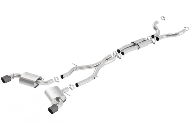 EXCEPT Convertible. System includes a merge X-Pipe for increased performance and improved sound. This system has single tips with carbon fiber shells and black anodized centers. It does NOT include Dual Mode or AFM valves. On vehicle equipped with factory AFM valves a check engine light will be activated. 3" Diameter system is intended for vehicles with significant upgrades that require a larger diameter exhaust. It is recommended for use with Long Tube Headers. Does NOT fit vehicles with Ground Effects Package (GFX). BORLA Catback(tm) & Axleback exhaust systems feature patented straight-through and multi-core technology to unleash hidden horsepower. Increased exhaust velocity adds power, driving excitement, fuel economy, and the distinctive BORLA Sound of Power respected by motoring enthusiasts everywhere. Each system is built from premium T-304 austenitic stainless steel, superior to T-400 series knockoffs (such as 409), to give you the absolute best in performance and durability. Ultra-smooth mandrel bends ensure maximum flow & power, and precision computer-controlled CNC manufacturing ensures an accurate fit. Best of all, BORLA stands behind every system with a Million-Mile Warranty. Just what you'd expect from the world's most experienced (and most winning) exhaust brand.