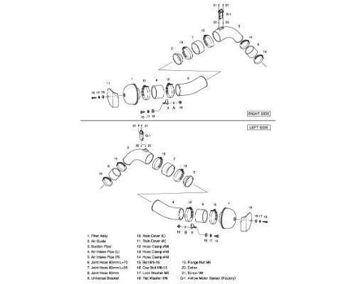 Features:This kit included Racing Suction Kit and Premium Suction Piping. It is best for total intake tuning.This kit was designed to improve the torque not only for the high speed range but also for the mid-range.Its unique sporty intake sound uplifts driver sprits.Locating the air cleaner unit inside the radiator grill stabilizes intake air temperature.Fitment:Nissan GT-R VR38DETT 2008Note:This product does not include turbo inlet pipes. It means that need to use OEM turbo inlet pipes.