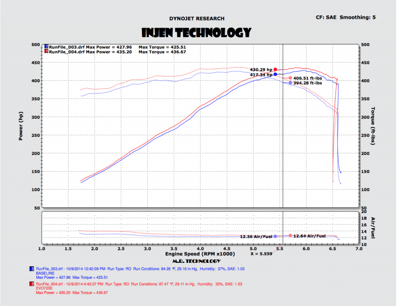 Clean and simple, NUMBERS talk! Injen has put in the time and diligence to stand behind our performance data. We put in the time to test and prove that we have developed a superior kit for your Chevrolet Corvette. After hours of designing and dyno testing, Injen is proud to say that the EVO7200 Evolution Air Intake system puts down numbers of up to 13 additional horsepower and 12 Ft.-lbs. of torque.