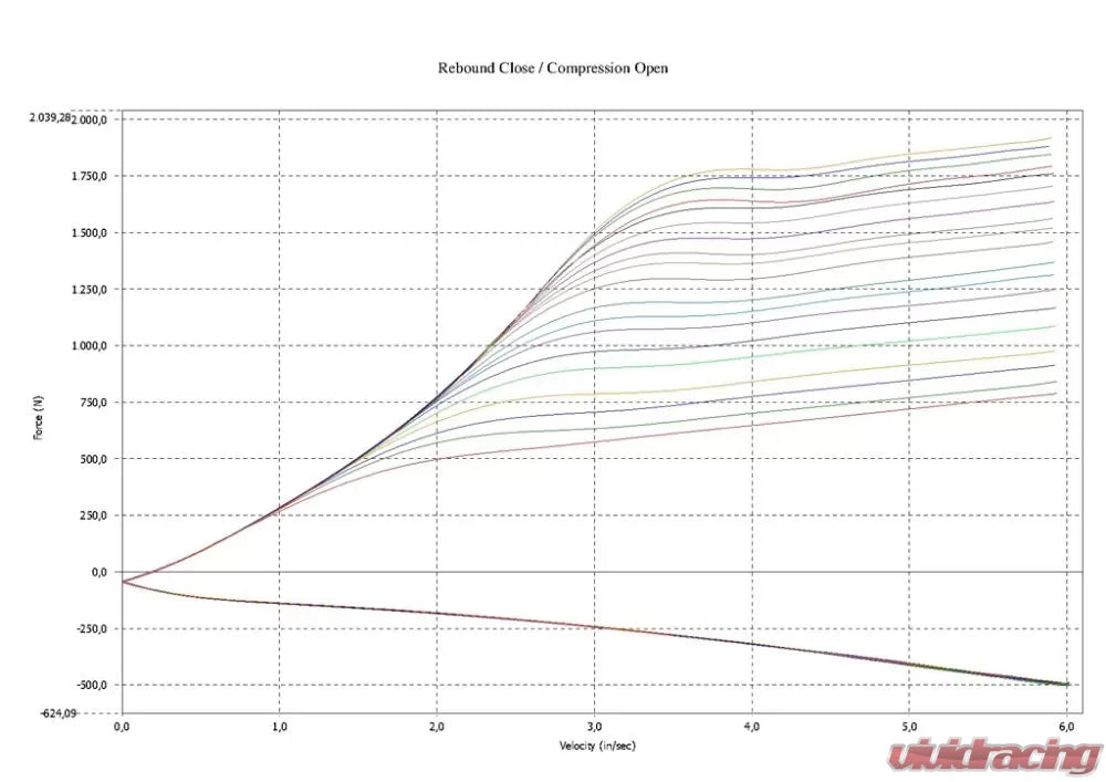 Sprung mass is controlled with rebound damping, delivered smoothly by the 8060 motorsport piston. The 12 series rebound system and 8060 piston provides a linear damping characteristic with smooth pressure development independent of compression forces. This allows the damper to transition between rebound and compression efficiently, maximizing grip and reducing tire wear.