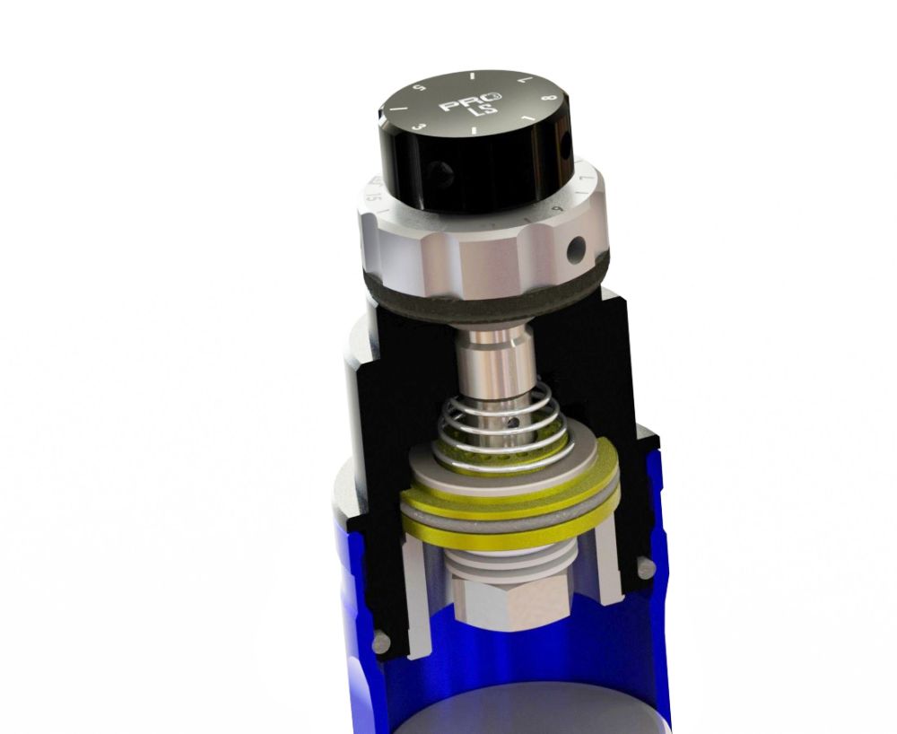 Control of the unsprung mass is achieved with our blow off valve. Steering balance and weight transfer rates are tuned with the low speed adjustment. The high speed compression adjustment sets the blow off velocity of the damper, allowing for harshness to be separated from control. Blow off damping settles the car on bumps, curbs, and maximizes grip. Low speed sets the speed at which the blow off valve opens allowing for fine tuning of balance and adjusting for surface conditions.
