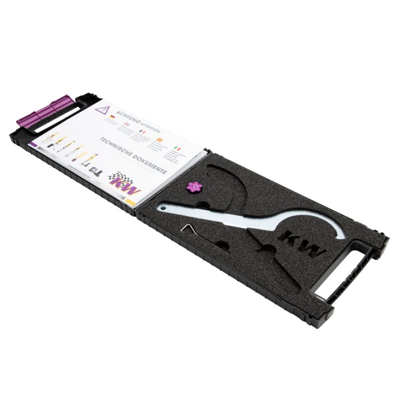 Features:Adjustable Compression Valve with KW TVC-A (Twin-Valve Compression Adjustable) TechnologyAdjustable Rebound Valve with KW TVR-A (Twin-Valve Rebound Adjustable) TechnologyAdjustable ride height coilover with Trapezoidal ThreadSpring seat constructed of polyamide composite that is wear and corrosion-resistant materialHigh-quality stainless steel with 100% corrosion-resistant Inox-Line coatingsElectronic Dampening EDC is included
