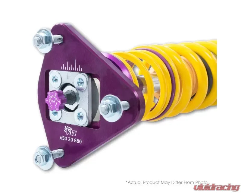 KW V3 Clubsport: 2 Way damping adjustable Coilovers for Race track and road. These set ups were specifically designed for the Nordschleife using track day tires. By using the optional adjustable top mounts, suspension geometry can be adjusted to the requirements of the tires and the intended use.