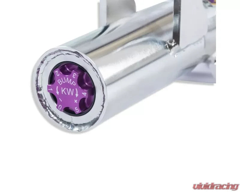 Cutting-edge motorsports technology for more performance on the road. Like every suspension product developed by KW automotive and manufactured in Germany, the KW V3 Coilover suspension kit also provides a significant improvement on the road. Thanks to the high-quality dampers, springs, and elastomer spring elements, pitching and rolling movements during load changes such as evasive maneuvers, cornering, acceleration, and braking are significantly reduced. The braking distances are also shortened. Thanks to improved support and feedback, drivers not only feel more confident but driving in everyday life is improved. With compression and rebound stage damping, that can be set separately and independently of each other, the damper setup can be customized to your personal driving preferences or vehicle changes such as weight, tire characteristics, or altered vehicle rigidity.