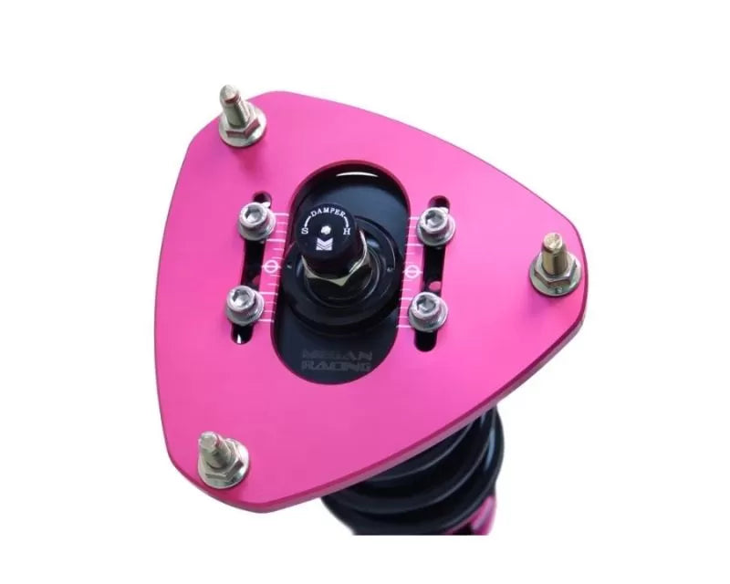 On applications utilizing strut-type suspension designs, the Megan Racing SPEC-RS Coil-over Damper Kits come with fully adjustable Pillow-Ball upper mount camber plates to easily tune and adjust your camber, giving you a competitive edge over other suspension setups. This allows you to tune your car for any ride height and still adjust camber to improve handling, vehicle predictability and tire wear, which is a great benefit both on the race-track and on the street.