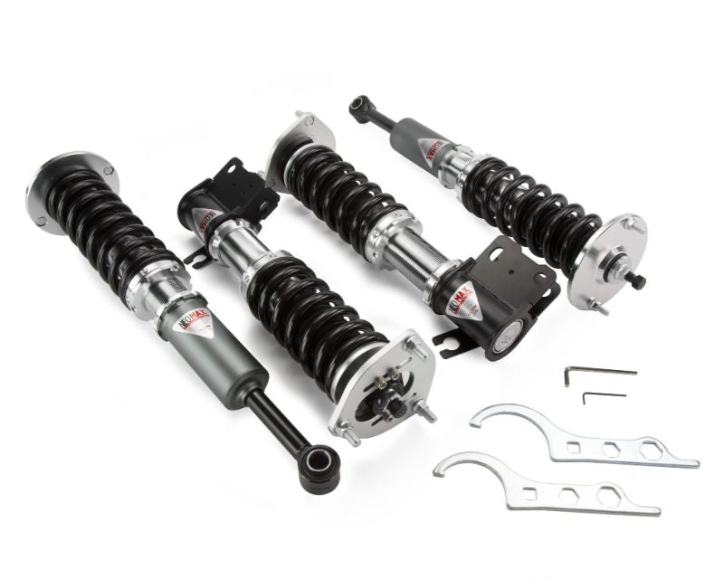 Silver's NEOMAX Coilover's are perfect for street driving, and still outperform most on the track. The Silver's NEOMAX coilovers are a monotube shock, independently height adjustable, with 24 levels of dampening adjustment, and come with an 18-month warranty.
