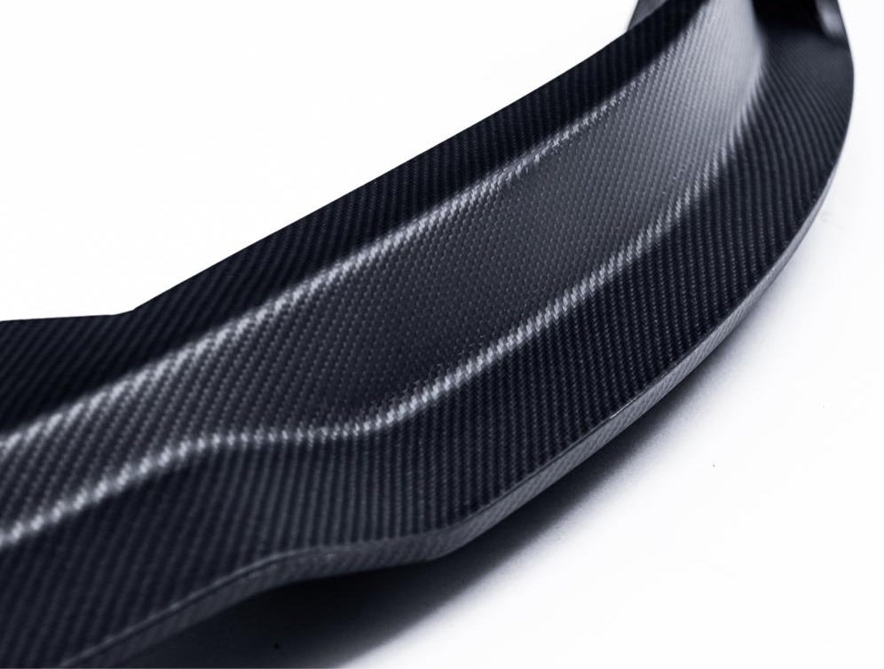 This carbon fiber front lip features an elegant 2x2 carbon fiber weave construction that is formed in an autoclave. Our 3K UV-resistant coating process will protect the front lip spoiler from fading so it maintains its luster for years to come. The Solidworks CAD software used ensures a proper fitment that enhances the aesthetics with minimal work. When paired with the Tesla Model 3, the carbon fiber delivers a top-notch performance look that the vehicle lacks from the factory – as it was not intended to be a sporty vehicle.